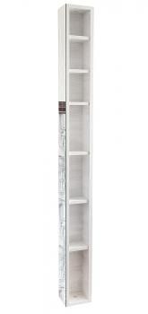 Трудно сказать, какая из функций шкафчика важнее. Практическая – удобные полочки, или эстетическая – эффектная парящая зеркальная колонна, да еще и удобное высокое зеркало, которое можно повернуть под нужным углом. Корпус шкафчика изготовлен из высококачественного ЛДСП. Доступны два стандартных цветовых решения: венге и выбеленный дуб, также вы можете заказать любой нужный вам цвет из нашего списка (Белый матовый (влагостойкий) RAL 9003, Графит, Ясень Светлый, Ясень Темный, Дуб Солсберри, Дуб Сонома, Ноче Мария Луиза, Ноче Экко, Дуб Галиано, Молочный Дуб).