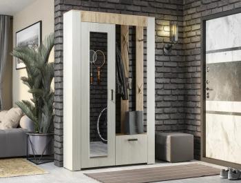 Прихожая Франк – универсальное решение для организации хранения во входной зоне. Компактный шкаф со штангой и полками, тумба с отсеком под обувь и открытая вешалка позволят Вам с комфортом разместить верхнюю одежду, обувь,аксессуары, сумки и мелкие вещи и содержать их в порядке. Сочетание крафта белого и ясеня украсит интерьер помещения.