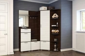 НИКА Шкаф угловой (ШУ701), НИКА Тумба малая (ТМ500), НИКА Тумба высокая (ТВ500), НИКА Зеркало (з500), НИКА Вешалкаугловая (ВУ354), НИКА Вешалка (В500) Материал ЛДСП Цветовое решение: Венге / Лоредо.