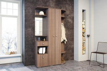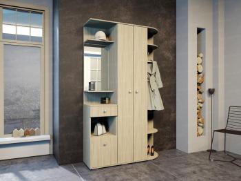 Все что может понадобиться вам в прихожей, предусмотрено в модели Виза. Шкаф, обувница, множество открытых и закрытых полок, вешалка быстрого доступа, а также зеркало органично сочетаются в представленной композиции. Сочетание радиусных полок и стандартного угла можно весьма эффектно обыграть в прихожей, в зависимости от геометрии помещения. Нтуральный цвет мебели создает ощущение легкости и не отягощает пространство, и без того, обычно довольно темной прихожей.