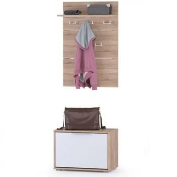 Обувница оснащена удобным откидным фасадом со специальными полками для хранения обуви. Вешалка включает пять двухрожковых крючков из прочного пластика и верхнюю полку для головных уборов. Все элементы выполнены из качественной ламинированной ДСП толщиной 16 мм с ПВХ-кромкой.
