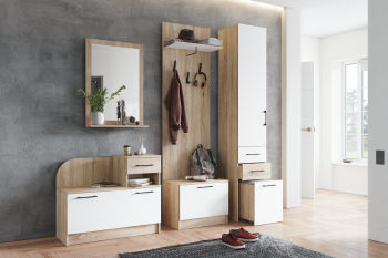 Комплект мебели из коллекции Денвер прекрасно подойдет для Вашей прихожей. Прямой двухдверный шкаф с комбинированным пеналом и угловым завершением, высокая обувница с навесным зеркалом и открытая вешалка с полкой-антресолью – все Ваши вещи найдут свое место и будут содержаться в порядке, а процесс сбора на улицу станет максимально комфортным.
