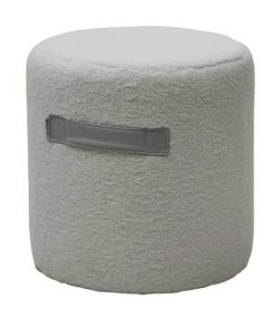 Пуф обит мягкой тканью, напоминающую шерсть молодого ягненка. Ручки из экокожи.