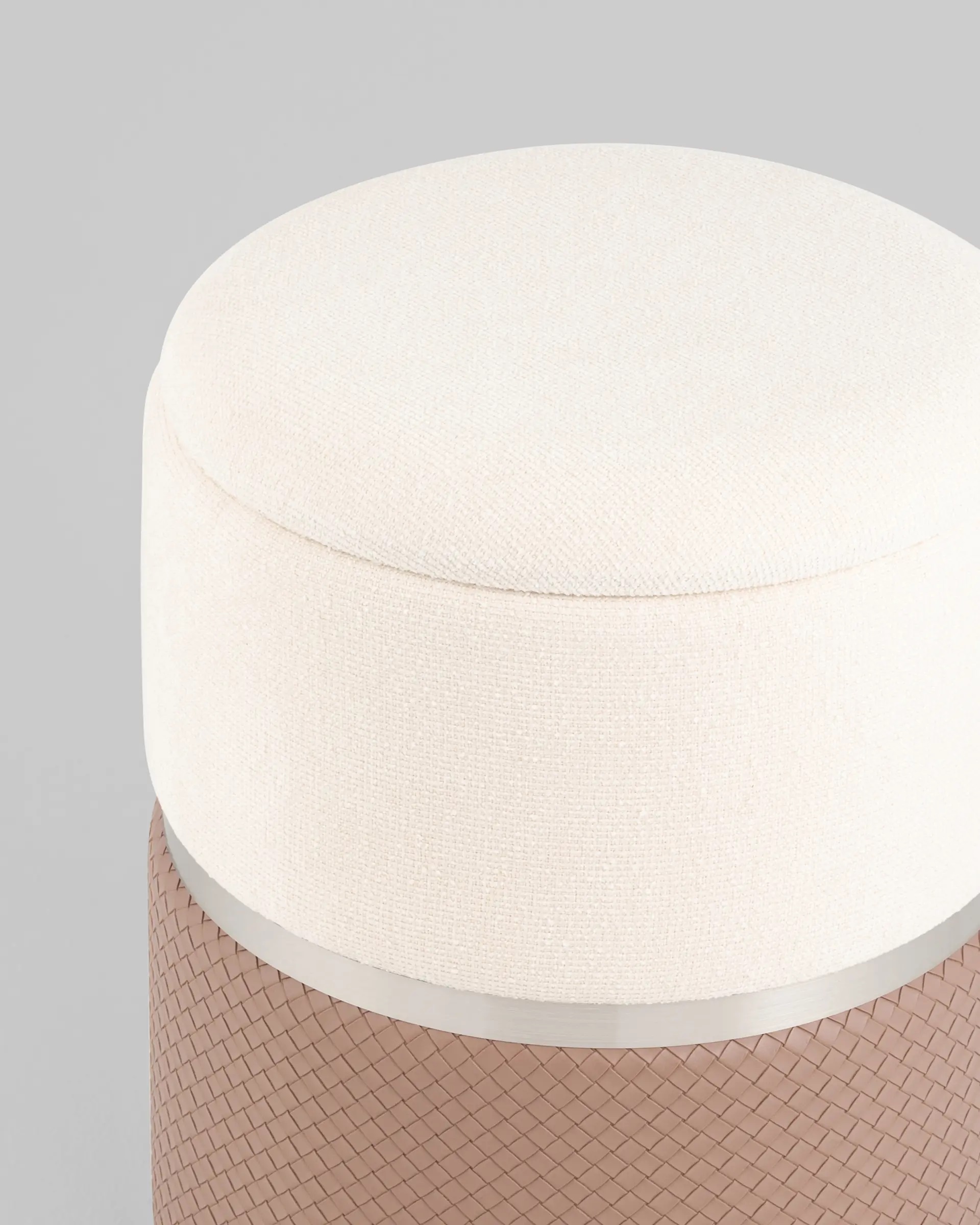 Высота пуфа: 44 см. Диаметр: 36 см. Форм пуфа – круг, цилиндр.