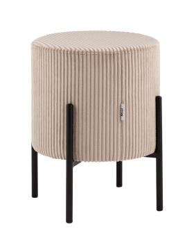 Каркас пуфа выполнен из фанеры, что обеспечивает прочность и долговечность конструкции. Обивка из велюра придает изделию мягкость и уют, а бежевый цвет добавляет тепла и гармонии в интерьер. Черные ножки подчеркивают стильный внешний вид пуфа.