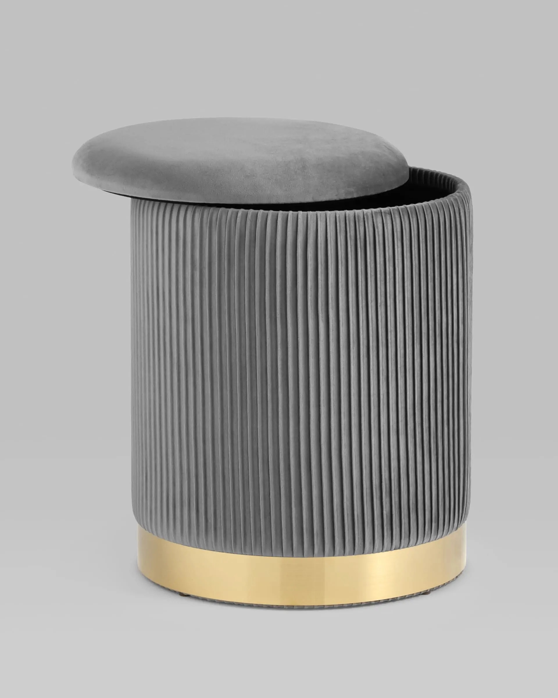 Лаконичная модель пуфа в обивке из мягкого велюра, которая дополнит интерьер в современном стиле. Основание выполнено из металла в золотом цвете. Обивка красиво украшена декоративными оборками. Под сидением имеется ящик для хранения мелочей. В основании предусмотрены специальные подпятники, которые делают пуф более устойчивым и предотвращают скольжение.