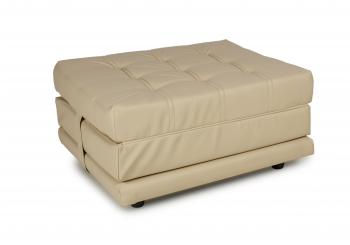 Часто происходят ситуации, когда на нашей кухне или гостиной не хватает места для того, чтобы поставить туда необходимое количество стульев для приёма гостей. В этом случае, оригинальным вариантом станет приобретение пуфа. Данный вариант прямоугольной формы с мягким сиденьем является пуфом-трансформером, который может превратиться в небольшую дополнительную кровать. Состоит он из трёх мягких секций, которые стоят на пластиковых ножках. Он отлично дополнит прихожую, гостиную или детскую комнату. Изготовляется мебель из ламинированного ДСП и фанеры, с использованием ткани и кожзама. Все эти материалы имеют необходимые сертификаты качества и будет служить вам в течение многих лет.