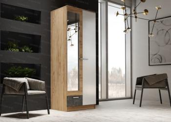 Двухдверный шкаф из серии Адель прекрасно подойдет для хранения вещей на плечиках и одежды в сложенном виде. Одна зеркальная дверца поможет Вам держать под контролем внешний вид, а ящик снизу подарит дополнительное место. Благодаря ширине в 80 см шкаф будет идеален для малогабаритных квартир: впишется в гостиную, спальную комнату или коридор. Сочетание дуба вотана, белого гладкого и темного цемента позволяет расположить шкаф в интерьере в стиле лофт.