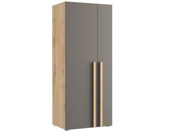 Шкаф двухдверный Комфорт-S Виллитус М1 – корпус и фасады выполнены в стильных современных цветах «Графит » и «Дуб Вотан». Главной особенностью являются фрезерованные ручки из массива дуба. Внутри можно размещать элементы декора и книги на удобных открытых полках. Фурнитура – петли с доводчиками, на лицевых торцах долговечная кромка 2мм.