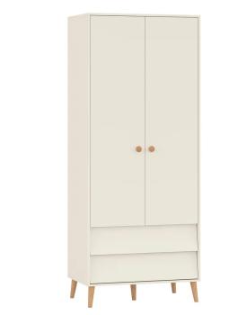 Распашной 2х дверный шкаф для одежды 2-мя выдвижными ящиками АФИНА 4-75901. Внутри шкаф оборудован антресольной полкой и штангой. Ящики на направляющих полного выдвижения, механизм открывания и закрывания ящиков Push-to-Open – нажатием. Ручки дверей и высокие опоры из массива Бука.
