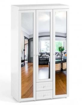 Шкаф 3-х дверный с ящиками и 3-я зеркалами Монако МН-58 белое дерево – вместительная комбинированная система хранения для спальни или прихожей.