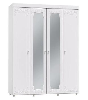 Шкаф 4-х дверный с 2-я зеркалами Италия ИТ-60 белое дерево – яркая и вместительная система хранения для спальни или прихожей.