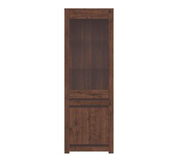 Витрина поделена на два отсека с помощью двух дверц: за стеклянной дверцей скрыты две просторные полки, за дверцей из ЛДСП — ещё одна полка. Витрина идеально подойдёт для хранения книг, посуды, музыкальных пластинок и других вещей. Интегрированные ручки удобны в использовании. Витрина оснащена шариковыми направляющими, которые позволяют бесшумно закрывать и открывать дверцы.