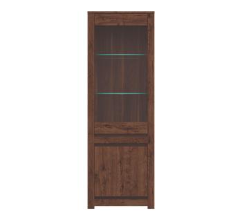 Стеклянная дверца и LED-подсветка освежит интерьер, а также привлечет внимание к содержимому витрины. Три просторные полки позволяют разместить книги, посуду и другие вещи. Интегрированные ручки смотрятся минималистично. Витрина оснащена системой бесшумного закрывания.