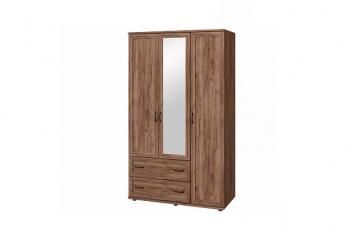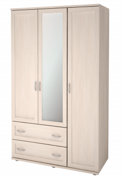Шкаф трехдверный с зеркалом, штангой, полками и ящиками.