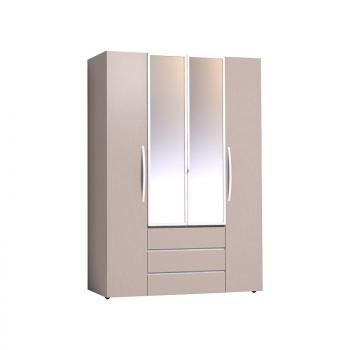 Вместительный четырехдверный шкаф коллекции Brownie оснащен отделением для одежды со стационарной штангой длиной 777 мм за зеркальными фасадами в белой раме, двумя боковыми отделениями для хранения белья, тремя выдвижными ящиками. Ящики, без лицевой фурнитуры, открываются за скос и оснащены шариковыми направляющими полного выдвижения. Зеркала проклеены специальной защитной пленкой, и если вдруг они разобьются, то осколки не разлетятся по всей комнате, а останутся на пленке. Элегантная ручка-петля из белой экокожи позволит открывать дверцу, не прикасаясь к зеркальному полотну. Вторая зеркальная дверца открывается за торец. Глухие фасады шкафа украшают гнутые ручки из белой экокожи. Рама, ручки и планки на ящиках в белом декоре освежают декор Мокко.