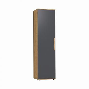 Распашной шкаф для одежды и белья комплектуется выдвижной штангой для одежды. При желании можно докупить и установить модуль CROWN 19 Полки (в комплекте 3 полки) тем самым изменив функционал шкафа. Фасад шкафа с трапециевидной ручкой из массива перенавешивается на правую и на левую сторону.
