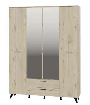 Грамотно организовать хранение в спальне, используя при этом минимум пространства, поможет четырехстворчатый шкафиз коллекции Sofia. Модель оснащена набором полок для хранения коробок и вещей в сложенном виде, продольной штангой для деликатной одежды на плечиках и двумя ящиками на шариковых направляющих для хранения белья. Несмотря на свои габариты, шкаф не кажется массивным: зеркальные фасады визуально облегчают его конструкцию, а тонкие черные ножки приподнимают его над полом.