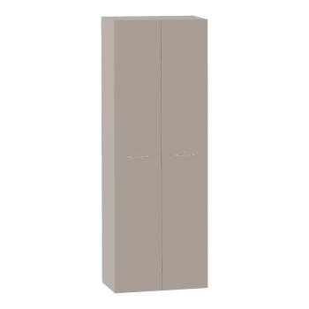 Шкаф двухдверный выполнен из ЛДСП цвета Капучино и имеет 2 вместительных полки в верхней части шкафа, 4 полки в правой части, и штангу для одежды на плечиках – в левой. Ручки в форме скобы выполнены из белого матового металла. Все петли – плавного закрывания.
