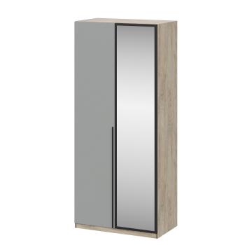 Шкаф для одежды Этна выполнен в трендовом декоре: цвет фасадов «софт грей» гармонично дополняет сложный древесный рисунок корпуса «дуб эндгрей». Наполнение шкафа – 2 стационарные штанги.