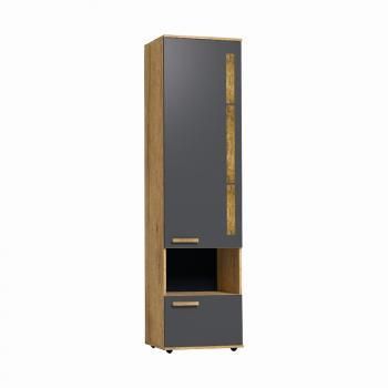 Crown 1 Шкаф МЦН для гостиной в современном стиле легко комбинировать с 3 Тумба ТВ — это практичное и функциональное решение для гостиной. В открытой нише разместите книги или элементы декора, а за глухими фасадами с декоративной вставкой ручной работы — бельё, документы, ценные вещи. Нижний фасад откидной с кронштейном-ограничителем. Регулируемые опоры шкафа позволят компенсировать незначительные неровности пола.