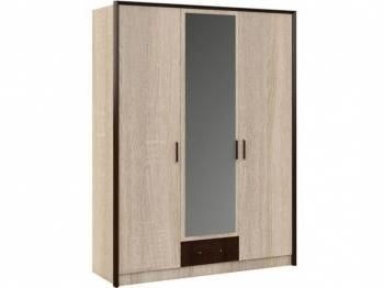 Классический распашной трехдверный шкаф с дополнительным выдвижным ящиком выполнен в стиле минимализм: строгие черты, функциональность и простота. Контрастный профиль из МДФ 22мм по внешним углам со скругленными краями – максимально безопасное использование мебели. Кромка цвета венге подчеркивает древесную текстуру и рисунок светлого дуба сонома. Зеркало на центральном фасаде делает комнату светлее и просторнее. Мебель выполнена из экологичных материалов