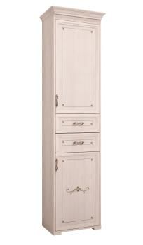 Комбинированный шкаф из коллекции «Афродита» станет практичным решением для грамотного хранения в гостиной. Благодаря своей вместительности этот стильный предмет интерьера будет особенно незаменимым в небольшой комнате. Шкаф состоит из 4-х секций, в которых Вы легко сможете разместить все необходимое. Нижняя часть с 2-мя полками позволит хранить посуду или документы. На трех полках верхней части Вы спокойно можете разместить книги, фотоальбомы или даже бельё. Два выдвижных ящика посередине позволяют хранить мелочевку — так все самое нужное у Вас всегда будет «под рукой». За счет глухих фасадов вещи будут скрыты от посторонних глаз. А элегантное оформление этой модели шкафа добавит изысканности интерьеру.