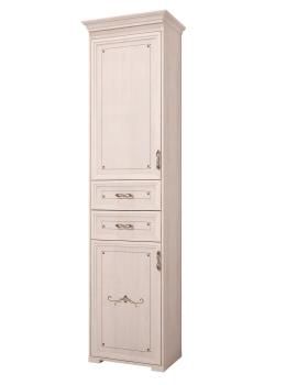 Левосторонний комбинированный шкаф из серии «Афродита» идеально разместится в любой гостиной. Благодаря небольшим размерам Вы сэкономите пространство, а продуманному наполнению -организуете грамотное и при этом компактное хранение вещей в основной комнате дома. Комбинированный шкаф состоит из 5-ти полок и 2-х выдвижных ящиков, куда поместятся разноплановые вещи. Три верхних полки отлично подойдут для хранения документов, фотоальбомов и книг, а две нижних — для посуды. Секция с выдвижными ящиками позволит разместить всю необходимую домашнюю мелочевку. Все секции шкафа имеют глухие фасады с элегантным оформлением и утонченными ручками. Благодаря этому гостиная приобретает элегантный вид.