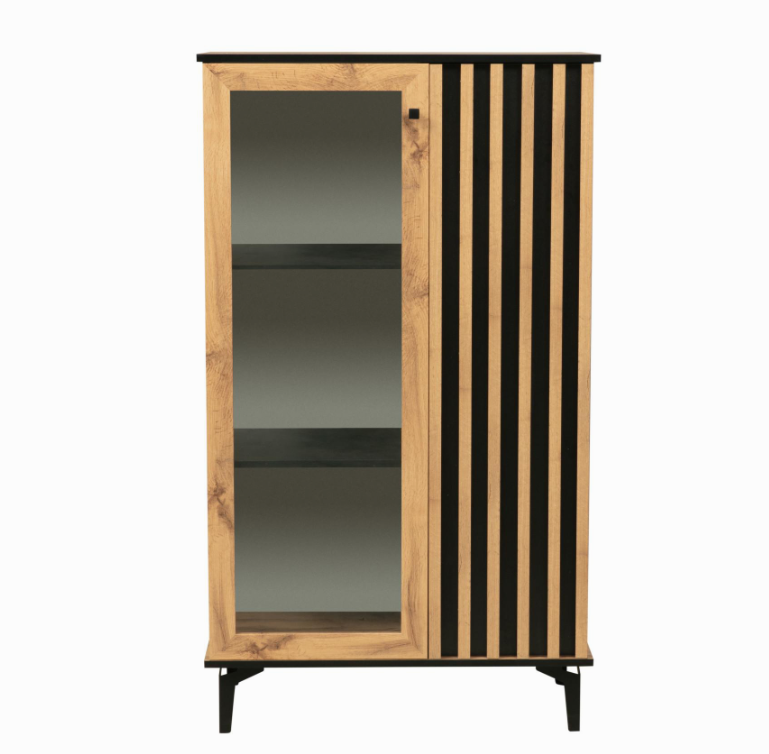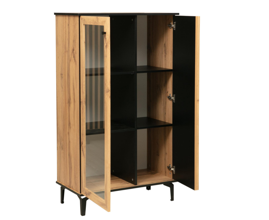 Распашной шкаф-витрина из серии Либерти с 2-мя распашными дверями,одна из которых со стеклом. Шкаф укомплектован полками.
