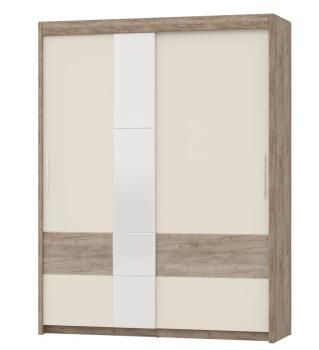 Современный шкаф-купе с 2-мя раздвижными дверями, одна из который оборудованна зеркалом. Внутри шкаф разделен на 2-е секции и оснащен штангой и полками.