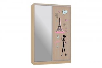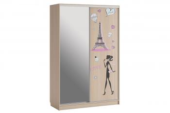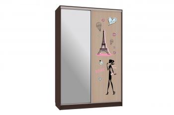 - Комбинированные дверные панели – одна дверь из ЛДСП, вторая – зеркало с принтом и противоосколочной пленкой