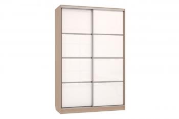 Двухстворчатый шкаф-купе выполнен в прямоугольной форме с матовой поверхностью. Напольный тип установки делает его устойчивым и надежным. Внутреннее пространство организовано максимально удобно – здесь есть место и для вешалок с одеждой, и для сложенных вещей на полках, и для объемных предметов в верхних отделениях.