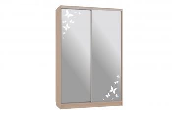 - Стильные двери-купе с рамочным стальным профилем и зеркалами, украшенными принтом «Бабочки». Зеркала безопасны благодаря защитной противоосколочной пленке.