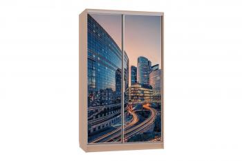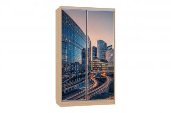 - Двери-купе: рамочный стальной профиль с матовым стеклом и принтом, защищенным противоосколочной пленкой