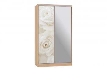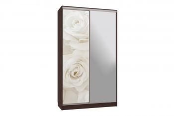 - Двери-купе: рамочный стальной профиль с одной зеркальной и одной матовой дверью со стеклом и принтом