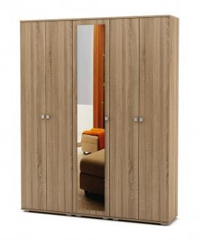 Шкаф Тунис-8 является прекрасным решением для современной прихожей. Комплект включает в себя два платяных шкафа с поперечными штангами и полками, центральный распашной пенал с глубокими полками. Створки платяных шкафов глухие, для пенала использовано ростовое зеркало, что визуально придает помещению больше глубины.