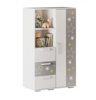 “Многофункциональный шкаф ШК-10 – это сочетание удобства трех выкатных ящиков, открытые полки для хранения детских мелочей и игрушек, плательное отделение с хромированной штангой дополненное антресольной полкой. ШК-10 – это оптимальное по своей функциональности и декору решение для детских комнат небольшой площади и яркое дополнение к полноразмерному двухстворчатому шкафу ШК-09