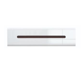 Белоснежный глянцевый фасад декорирован посередине рифленой темной вставкой. Здесь как раз находится «центр открытий» — стоит потянуть вверх, и дверца отворится. А за ней — три довольно вместительные ячейки для размещения самых разных предметов. Максимальная нагрузка на полку — 5 килограммов.