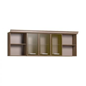 Организовать хранение в комнате подростка поможет вместительный навесной шкаф Nature 81. Навесной шкафчик шириной 2241 мм с двумя открытыми отделениями и тремя за стеклянными тонированными фасадами. Стеклянные полки выдерживают до 2 кг каждая. Шкаф декорирован составным карнизом в стилистике всей молодежной коллекции Nature.