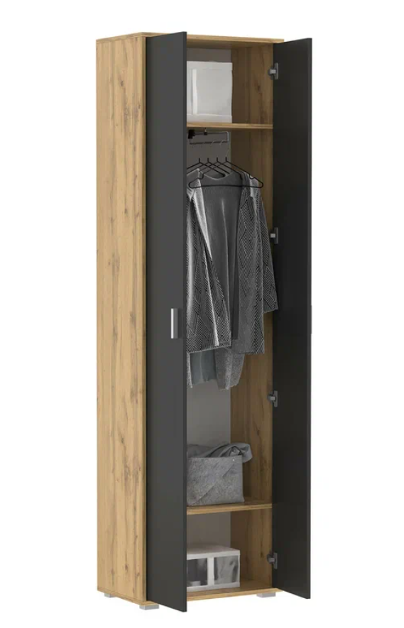 Шкаф для одежды 65.07 “Антре” дополнит интерьер прихожей. Внутри шкаф оборудован выдвижной штангой, а так же полками, антресольной и под обувь. Ручки – пластик. Опоры – пластик мм.