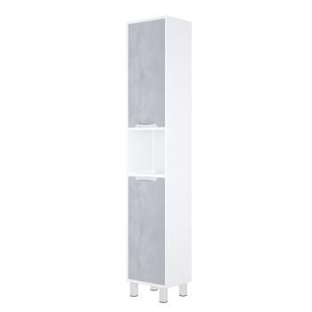 У пенала 2 распашные двери, по центру – ниша. У пенала – 4 металлические опоры. Боковины и передники кромки видимых полок красятся в белую глянцевую эмаль.