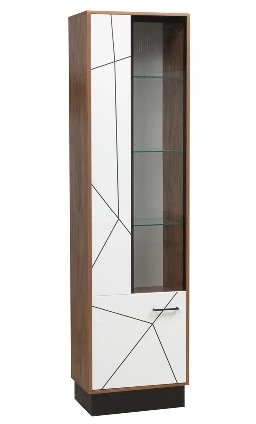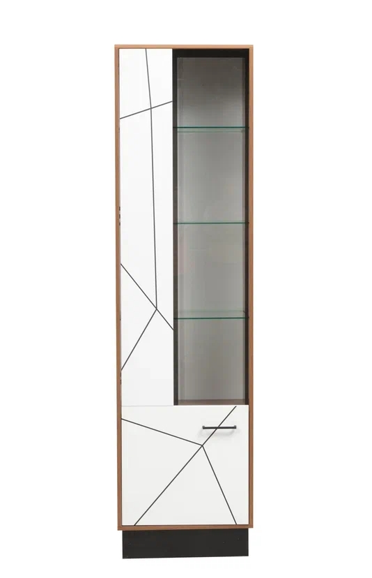 Распашной шкаф -витрина 54.01 из серии Гамма укомплектован полками из стекла и ЛДСП