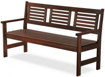 Изысканная садовая скамья для 3 человек. Строгие формы подлокотников и обрешетки спинки в псевдовосточном стиле идеально подойдут для украшения уютного уголка сада или помещения. Окрашен в цвет палисандр.