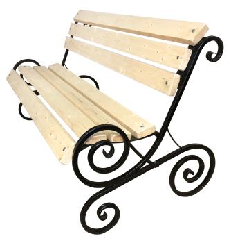 Скамья Завиток ДхВхШ – 1,5х1х0,95м. Нелачена, некрашена. Вес 25,6 кг. Брус-35х90 мм. Имеет красивые, изящные металлические элементы и предначначена для круглогодичного использования на открытом воздухе. Этот недорогой вариант подходит как для парков, скверов, дворовых и детских площадок, так и для собственного дома и дачи. Деревянные части изделия НЕ окрашены, ЧТО позволяет ВАМ максимально адаптировать изделие под ВАШ интерьер