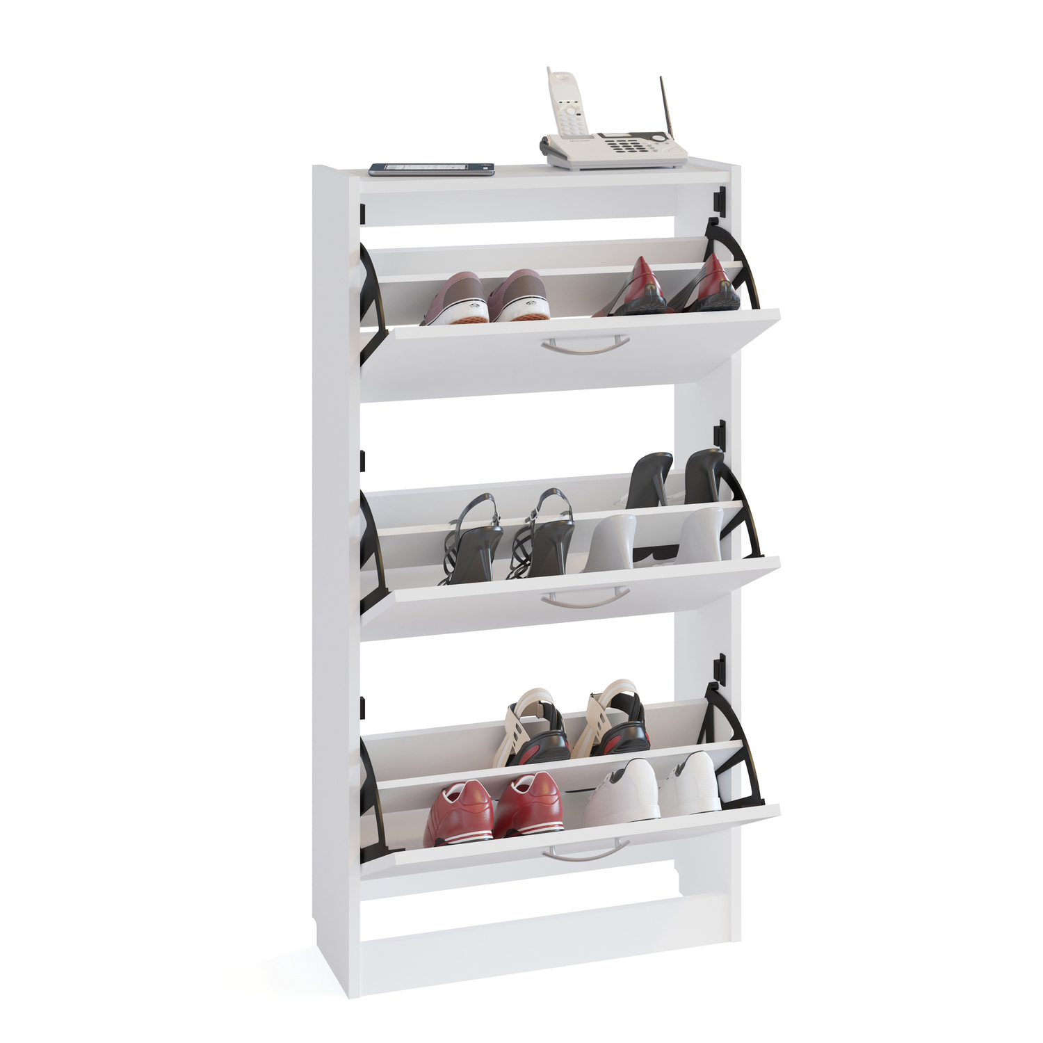 Лаконичная модель обувницы гармонично дополнит любой интерьер прихожей и позволит держать обувь в порядке и в быстром доступе. Модель оснащена тремя отделениями и рассчитана на восемь пар невысокой обуви на плоской подошве.