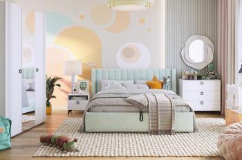 - Кровать Ева 160х200 см в мягком велюровом покрытии цвета мяты