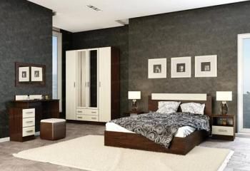 В комплекте:Трюмо ЭКО, Шкаф 4-х дверный КВАДРО, тумбы прикроватные ЭКО * 2 шт, кровать 1400.