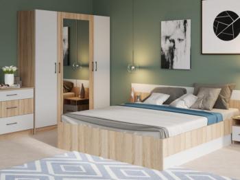Спальня Алена выполнена в стиле минимализм – естественные цвета, текстура дерева, простота и функциональность. В комплекте Алена оптимальный набор функциональных модулей, который необходим для обустройства спальни: вместительный шкаф с полками и штангой, комод с ящиками, кровать с крепким и надежным основанием из ламинированной плиты и прикроватные тумбы. Кровать с двух сторон идеально дополняют идентичные по стилю прикроватные тумбы с высокой стенкой на одном уровне с изголовьем кровати – это создает визуальную целостность, добавляет ощущение защищенности.