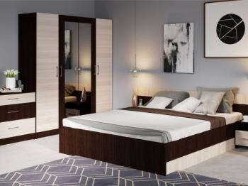 В цену комплекта входит: кровать 160 с основанием, тумба прикроватная (комплект 2 шт.), комод, шкаф 4дв с зеркалами.