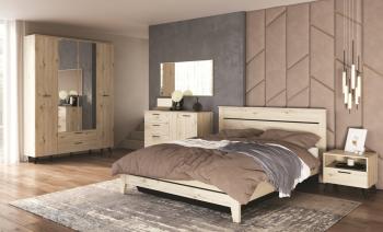 Коллекция Sofia – новинка и несомненное украшение на рынке мебели для спальни, гостиной и прихожей. Мебель выполнена в приятном, теплом декоре “гаскон пайн светлый” с имитацией натурального дерева, и украшена стильной наружной фурнитурой черного цвета. Тонкие ручки и ножки геометрической формы придают модулям легкости и визуально приподнимают их над поверхностью пола. Направляющие полного выдвижения на ящиках и петли с доводчиками добавляют Вам комфорта при ежедневной эксплуатации мебели. Комплект для спальни состоит из вместительного четырехдверного шкафа с ящиками, комбинированного комода, навесного зеркала, двуспальной кровати 160х200 со встроенным подъемным механизмом и ящиком для белья и компактной прикроватной тумбы.